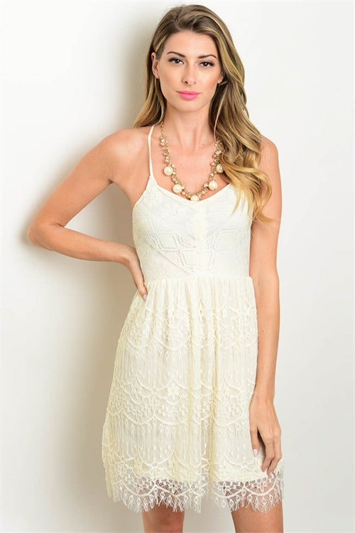 Lined lace dress with spaghetti strap with sweetheart neckline.